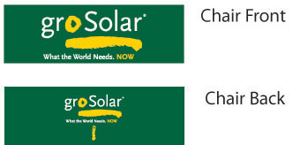 Price: $33.00 each, including the groSolar logo on the front of the chair and the groSolar logo and the exclamation point on the back of the chair.