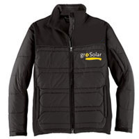 100% polyester puffy shell with 100% polyester stretch woven bonded to 100% polyester fleece with laminate. Wind resistant and water repellant with comfortable chin guard, internal weather storm flap, two-way zipper with ergonomic pull, and adjustable molded tab cuffs to secure sleeves and retain heat.