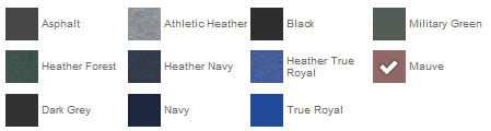 Colors: Athletic Heather, Navy, Black, Dark Grey, Heather Navy, Mauve, Asphalt, Heather True Royal, Military Green, True Royal, Heather Forest