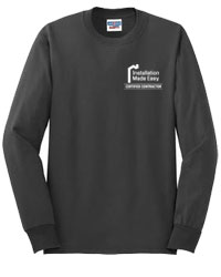 Sizes: S-3XL Price: $11.95 up to XL (Please add $2/2XL; $3/3XL;) Color: Charcoal Logo: Installation Made Easy in White.