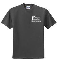Sizes: S-4XL Price: $7.95 up to XL (Please add $2/2XL; $3/3XL; $4/4XL) Color: Only Available in Charcoal Logo: Installation Made Easy in White.